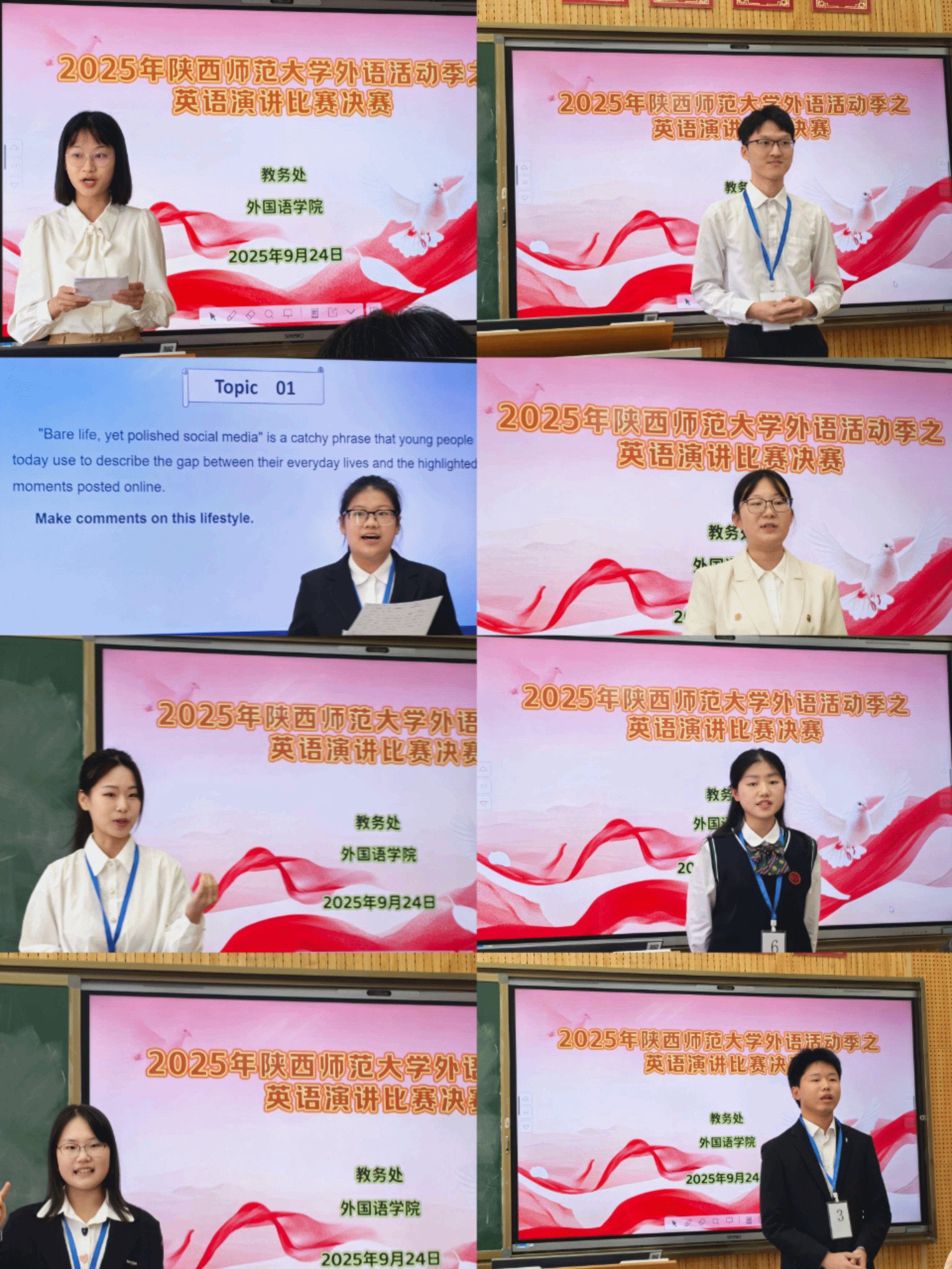 2025年9月24日,太阳集团tyc539外语活动季之英语演讲比赛决赛暨“外研社·国才杯”全国大学生英语演讲大赛校赛在雁塔校区在8502教室顺利举行。太阳成集团tyc539公共外语教研部主任马珂副教授,副主任罗显斌老师、王艳辉老师、杨蕾老师,以及公共外语教研部王晓芸老师、游建荣老师担任此次演讲比赛的评委,姚娜娜老师受邀担任提问嘉宾。