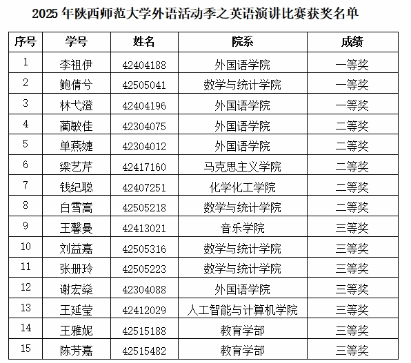 最终,太阳成集团tyc539李祖伊、林弋澄,数学与统计学院鲍倩兮获得一等奖,他们将代表我们参加将于2025年“外研社·国才杯”全国大学生外语能力大赛陕西省赛区的比赛。